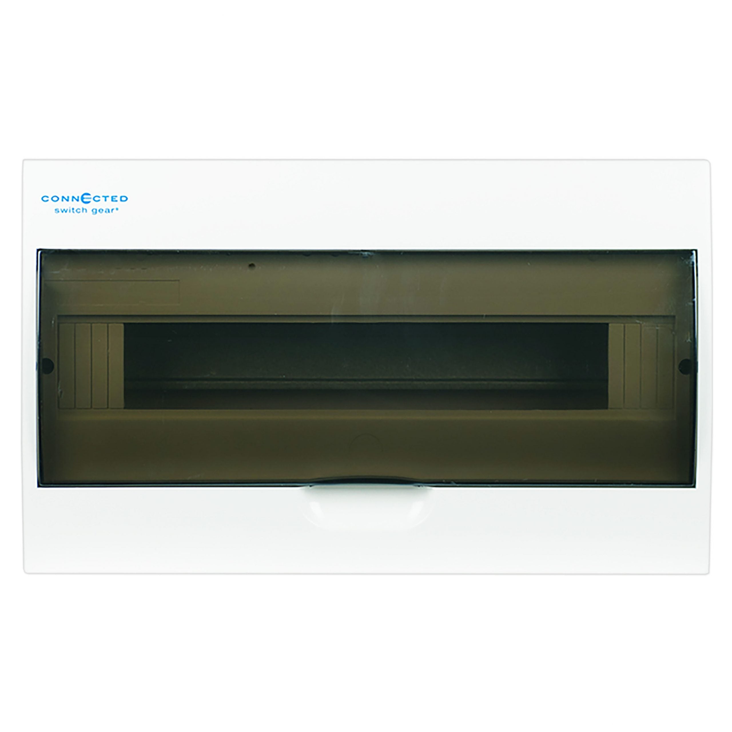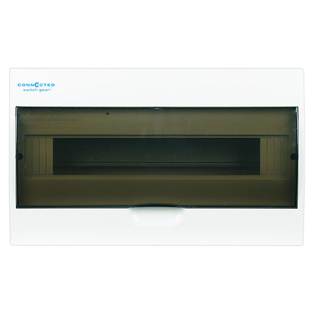 This is Connected Switchgears’ premium 18 pole switchboard. It is manufactured from high grade polycarbonate materials that are UV stable. It has been manufactured this way so that it will not fade or yellow with age. All of our enclosures are made with flame resistant material, so the DBSMC18 is flame proof up to 660 degrees celsius.