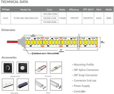 - Available in various color temperatures: 2700K, 3000K, 4000K, RGB