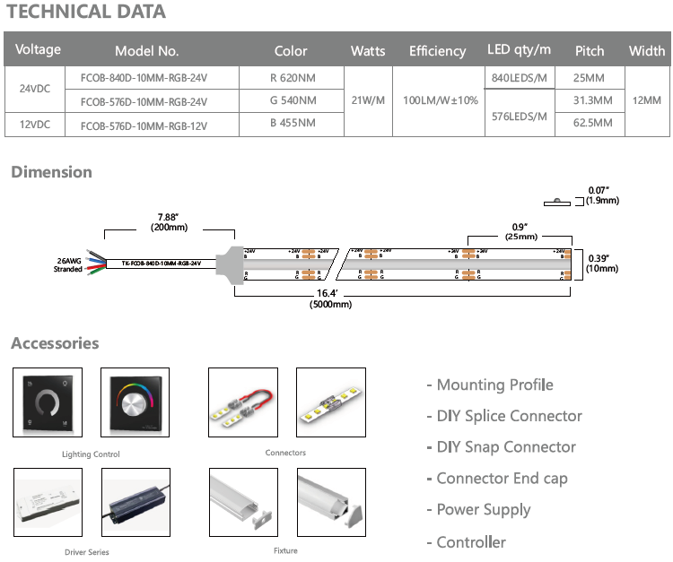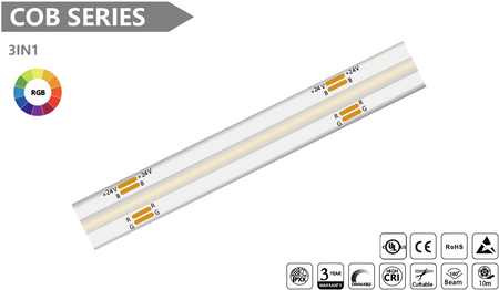 The COB (Chip On Board) Strip Light Series utilizes COB encapsulation, directly integrating LEDs onto circuit boards. This advanced LED package technology enhances thermal management, extending LED lifespan and ensuring high light flux density with minimal glare. The strips offer uniform illumination without dark areas and boast superior flexibility, allowing for arbitrary bending and 180-degree folding without damage.