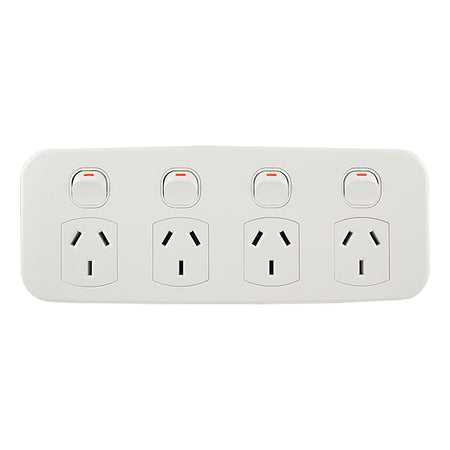 4 Gang GPO Slimline 10A 250V AC LUNA Series