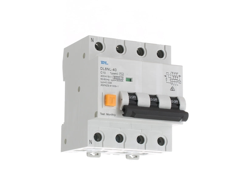 - The DL 4 Pole RCBO is a C Curve safety switch all in one compact solution for three phase installations. It has a 6kA rating ideal for commercial and residential applications. The RCD/MCB combo will protect property and life should current be detected leaking to earth within 30mA. The switch has an inbuilt test switch and is easily reset after the fault is rectified.
