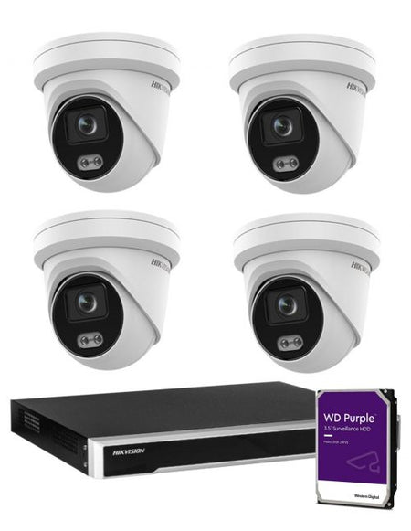 6MP Hikvision Colorvu CCTV Kit: 4 x Outdoor Colorvu Turret Cameras with Acusense + 4CH NVR / 3TB Kit