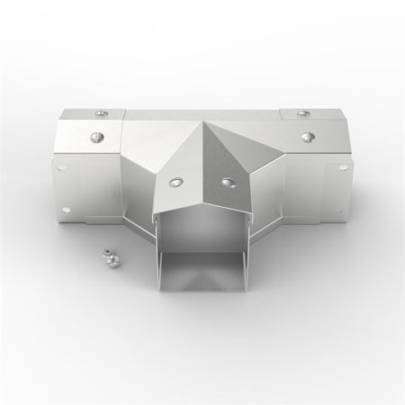 This satin (brushed) finish 90° front lid tee is compatible with our 75 x 75 (W x H mm) 15° Apex Lid Trunking System.