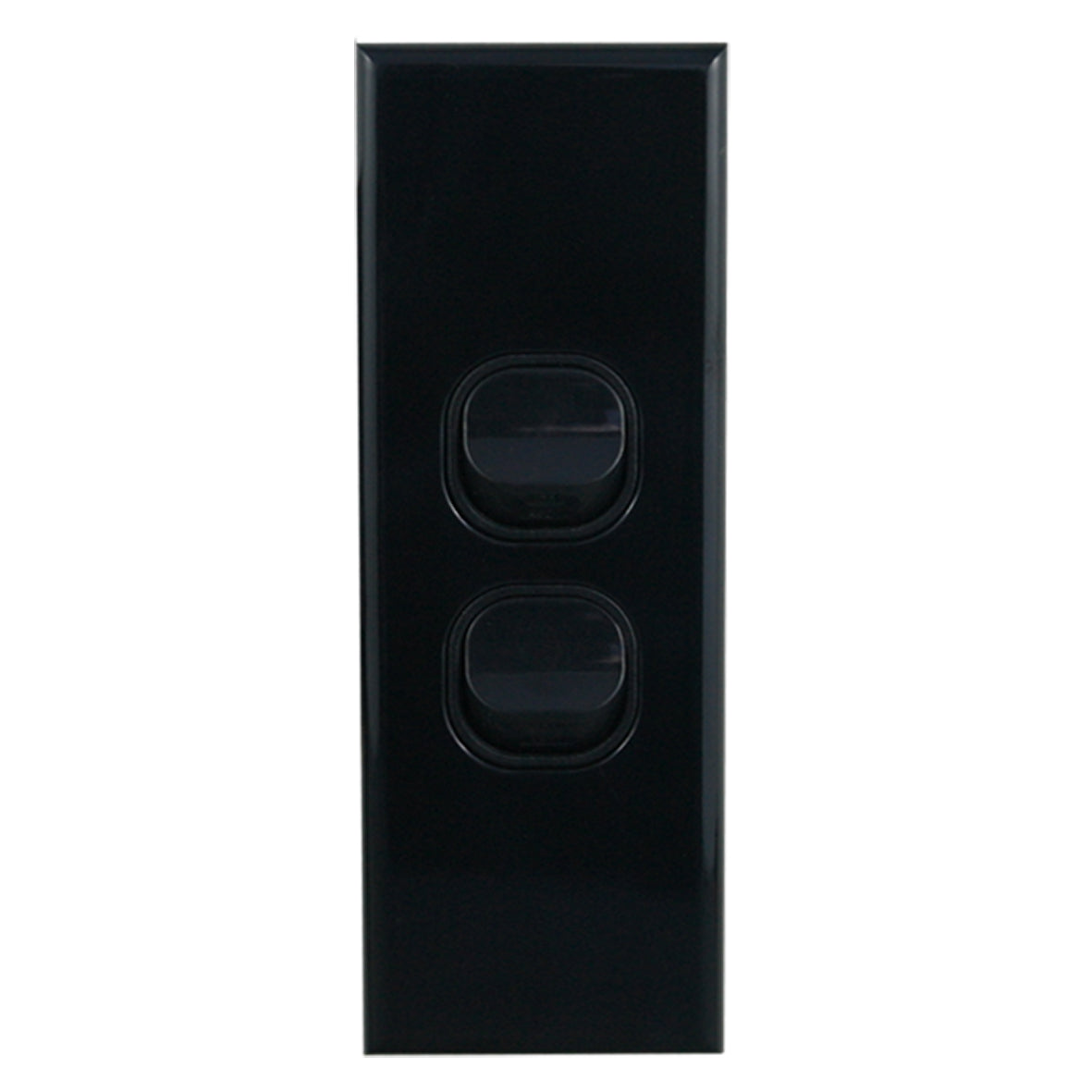 2 Gang Architrave Switch 10A 240V BLACK GEO Series