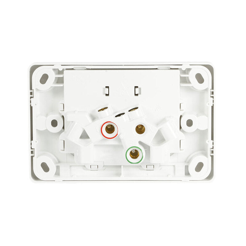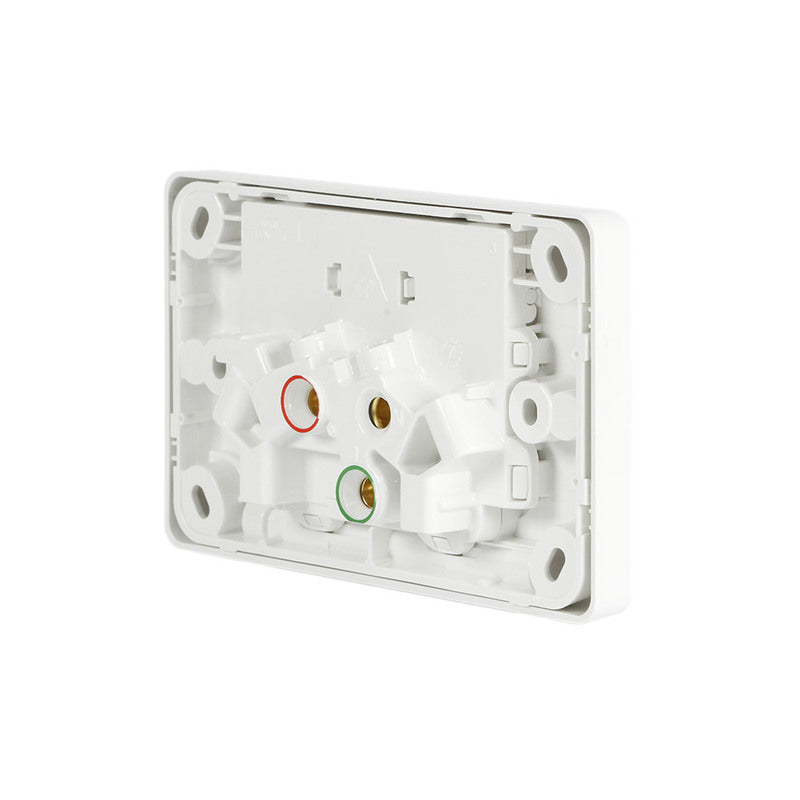 The C2025 power point is sturdy and well built. The connection screws are tough and offer large terminals for easy installation. There are also many securing locations around the power point plate to easily secure the power point to its mounting location. The C2025-WE power point comes complete with a white clip-on cover.