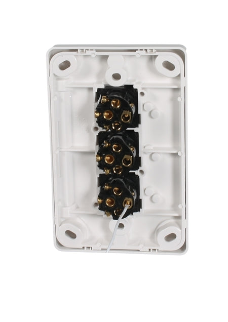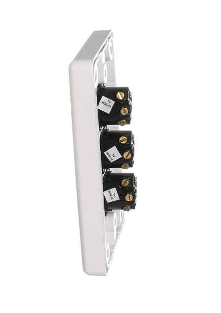The C2033VA switch is sturdy and well-built. This switch includes 3 x 30M-WE mechanism allowing for 1 or 2 way switching from three different switches. There is also a loop terminal for convenience. There are many securing locations around the light switch plate, making it very easy to find a secure mount. Use the C2033VA-WE to control multiple lighting requirements such as downlights, strip lights or outdoor fixtures