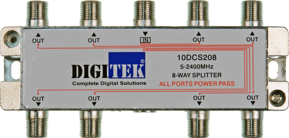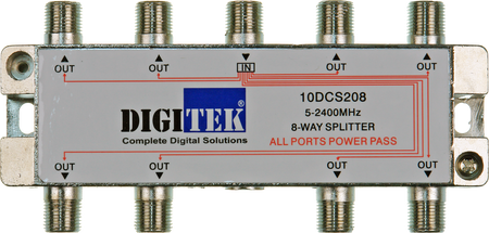 Digitek 8 Way 5-2400MHZ F Type Splitter - All Leg Power Pass