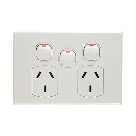 Double GPO with Extra Switch 10A/16A 240V AC WHITE GEO Series