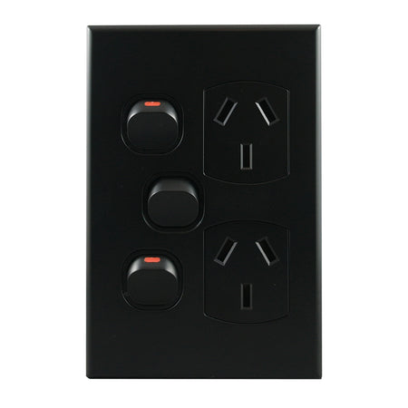 Double GPO with Extra Switch Vertical 10A/16A 240V AC Matte BLACK GEO Series