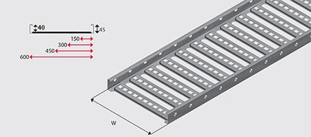 The tray offers support for cables with ladder style rungs. EzyTray offers 40mm cable laying depth, with 150-600mm widths over 3m lengths.