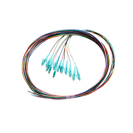 Fibre Pigtail LC OM4 Multimode 2m - 12 pack Rainbow - Aqua Connector | Backward Compatible With OM3
