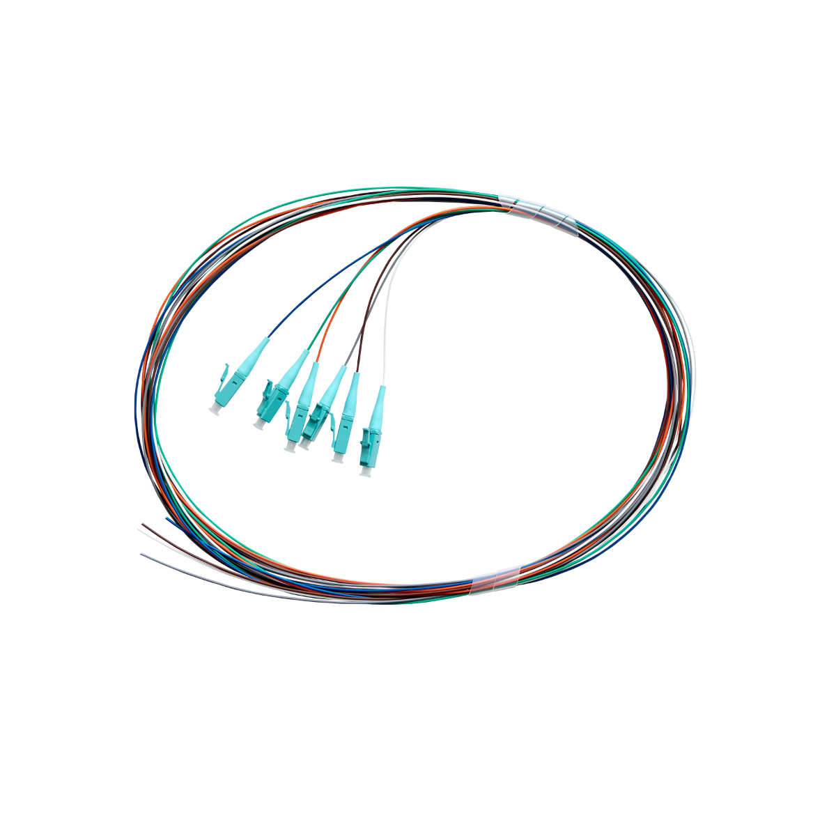 Fibre Pigtail LC OM4 Multimode 2m - 6 pack Rainbow - Aqua Connector | Backward Compatible With OM3