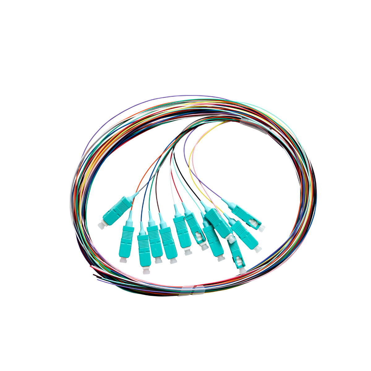 Fibre Pigtail SC OM4 Multimode 2m - 12 pack Rainbow - Aqua Connector | Backward Compatible With OM3