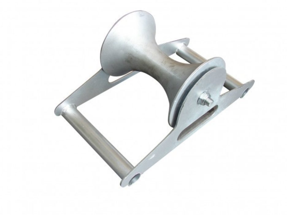 A durable trench roller guide that can also be turned on its side for corner pulls.Â