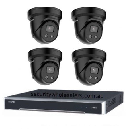 Hikvision 8MP Acusense 4 x Outdoor Turret With Strobe & Siren + 8CH NVR CCTV Kit BLACK