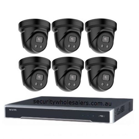 Hikvision 8MP Acusense 6 x Outdoor Turret With Strobe & Siren + 8CH NVR CCTV Kit BLACK