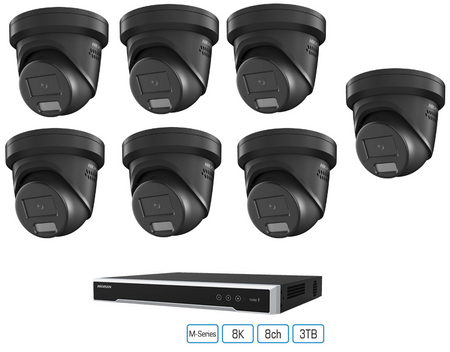 7 x 6 MP Hikvision DS-2CD2367G2H-LISU/SL Smart Hybrid Light ColorVu Turret Camera 2.8mm Strobe Speaker Black + 8CH NVR CCTV Kit