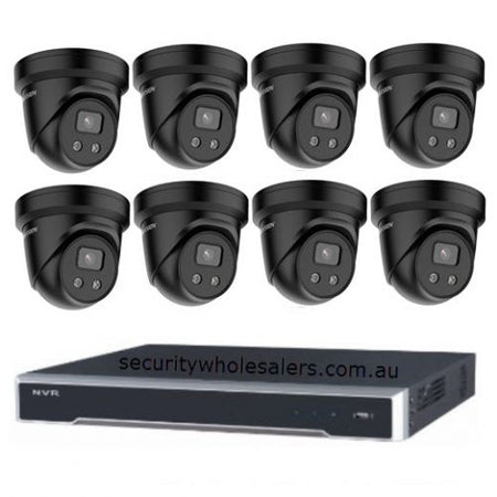 Hikvision 8MP Acusense 8 x Outdoor Turret With Strobe & Siren + 16CH NVR CCTV Kit BLACK