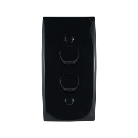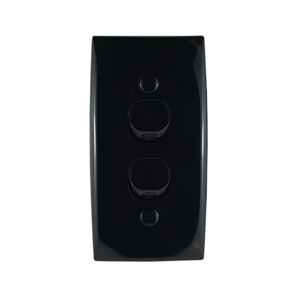 Intermediate Plate Light Switch 2 Gang – 54mm Mounting Centres BLACK