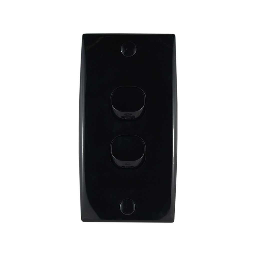 Intermediate Plate Light Switch 2 Gang – 78mm Mounting Centres BLACK