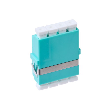 LC OM3 / OM4 Multimode Through Coupler Flangeless Quad Ceramic Sleeve | Aqua