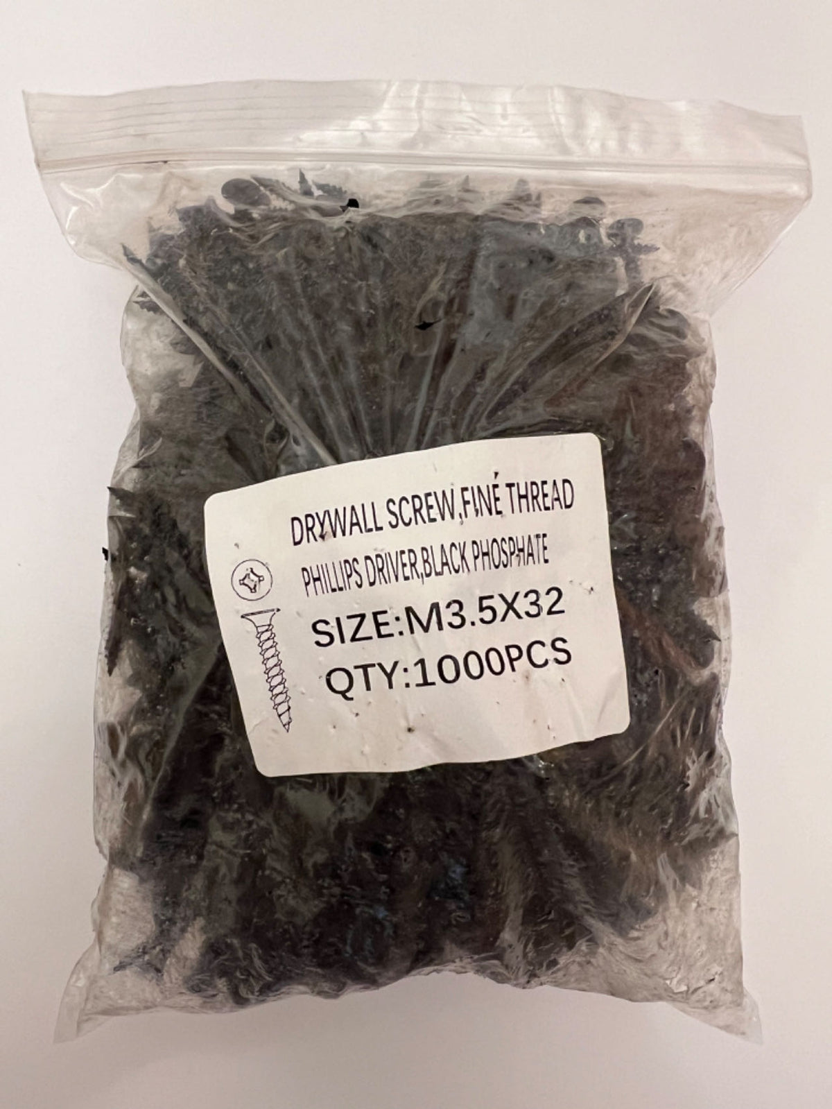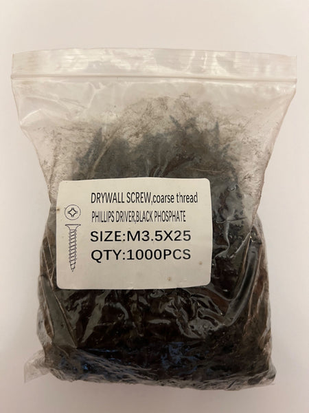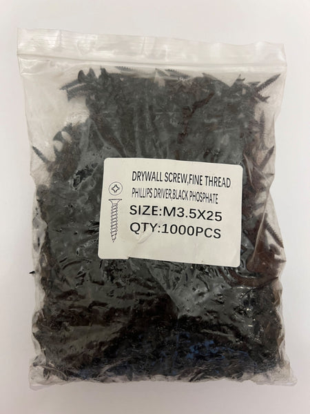 M3.5/6G Drywall Screws, Phillips, Black Phosphate 1000PCS