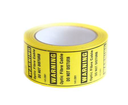 This black on yellow plastic identification/caution label is used to provide a permanent indication that here runs an important optical fibre cable that should not be disturbed. The label draws attention to “third parties” that there is an important cable. It is used in manholes and pits along the cables route in a dry position in the external/outdoor/field environment. The adhesive-backed label is wrapped typically twice around the cable. Individual label turns are strategically positioned in manholes and pits along the cables route, to identify individual optical fibre cables. The caution label is positioned in a prominent location in the manhole or pit to identify the cable/s. The label should prevent unnecessary disturbance to or movement of an installed optical fibre cable.
