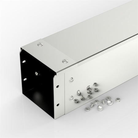 This IP4X / IPXXD polished finish 2.5 m length is compatible with our 150 x 150 (W x H mm) Flat Lid Trunking System.