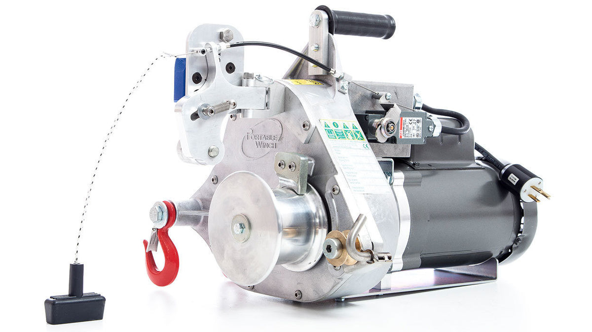 - Powered by a dependable 3/4 HP Baldorâ„¢ 230V electric motor, the capstan Portable Winchâ„¢ will pull 820 kg or lift 250 Kg at speeds of up to 10.5 m / min.