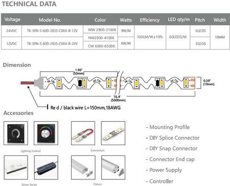 Our SMD (Surface Mounted Device) LED Strip Light Series offers effortless integration of accent LED lighting into any residential or commercial setting. Utilizing cutting-edge LED technology, these tape lights are exceptionally energy-efficient, boasting a remarkable Color Rendering Index (CRI) of 97+ across various color temperatures and lumen outputs. Available in customizable lengths, our LED strip lights can be tailored to fit diverse requirements and are offered in reels of both 5-meter and 50-meter lengths, allowing on-site cutting for precise installations. With options for custom cuts and standard roll sizes, our premium-quality LED Tape Light ensures optimal performance and versatility.