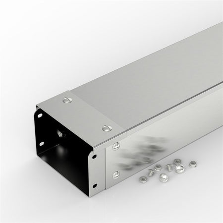 Electrix® Flat Lid Trunking Lengths, in 304 - V2A - 1.4301 stainless steel, are supplied complete with: lid, cover plate, turnbuckle lid retainers, coupling, nuts & screws.