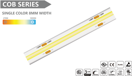 SINGLE COLOR 8MM WIDTH COB Led Strip - 10m/reel
