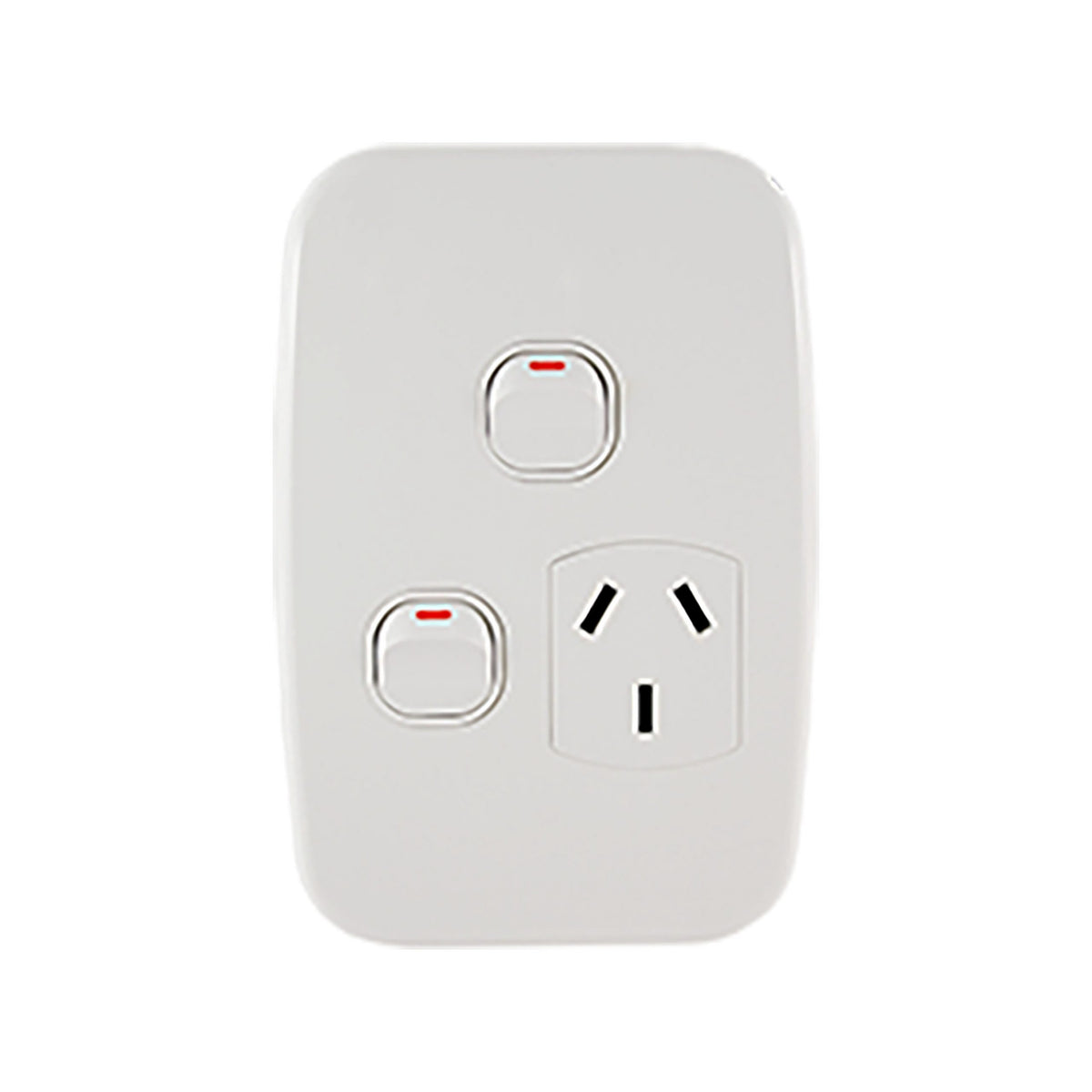 Single Power Outlet + Extra Switch 10A 250V AC Vertical | LUNA Series