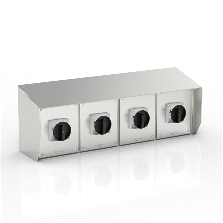 SR15-AB32X4-S316-BH-LT | WASHDOWNPRO™ IP66 15° Sloping Roof Rotary Isolator Enclosure with Allen-Bradley switches (Black Handles)