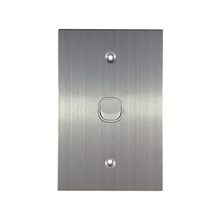 Stainless Steel Light Switch 1 Gang WHITE 10A 250V AC PLATINUM Series