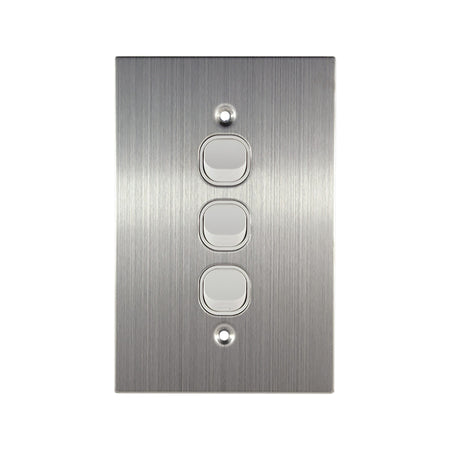 Stainless Steel Light Switch 3 Gang WHITE 10A 250V AC PLATINUM Series