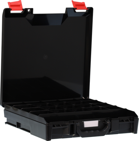 StorageTek Case STS-BK. This is a small ABS Black case with a solid ABS lid. These cases are suitable for Electricians, Plumbers, Data Cable installers, HVAC, TV Antenna Installers, Mechanics and many others in business, office, workshop or at home. A visually styled outlook providing a true tradesman carry and storage case for all their parts