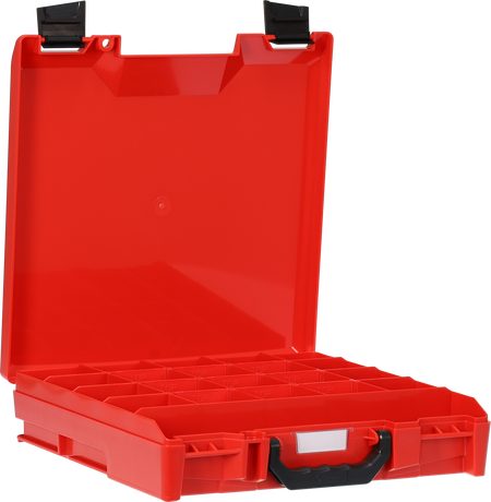 StorageTek Case STS-RD. This is a small ABS Red case with a solid ABS lid. These cases are suitable for Electricians, Plumbers, Data Cable installers, HVAC, TV Antenna Installers, Mechanics and many others in business, office, workshop or at home. A visually styled outlook providing a true tradesman carry and storage case for all their parts
