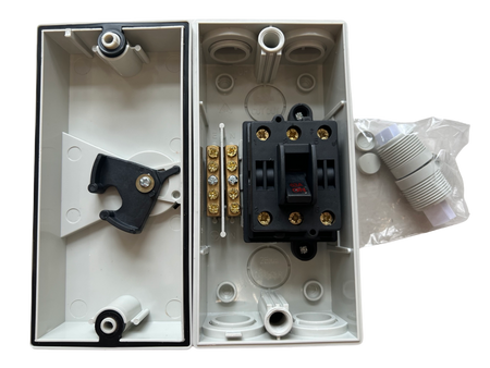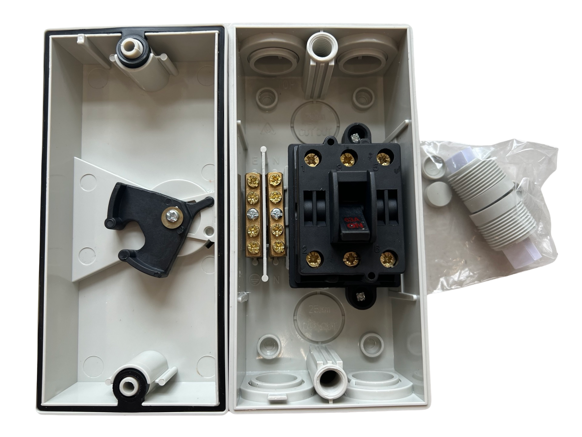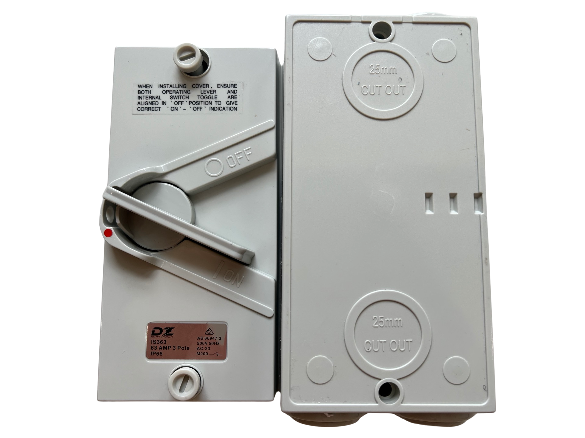 Introducing the Weatherproof Isolator Switch from DZ Electrical. This innovative switch is designed to withstand the toughest weather conditions, with an IP66 rating and dual 25mm screwed conduit entries on top and bottom.