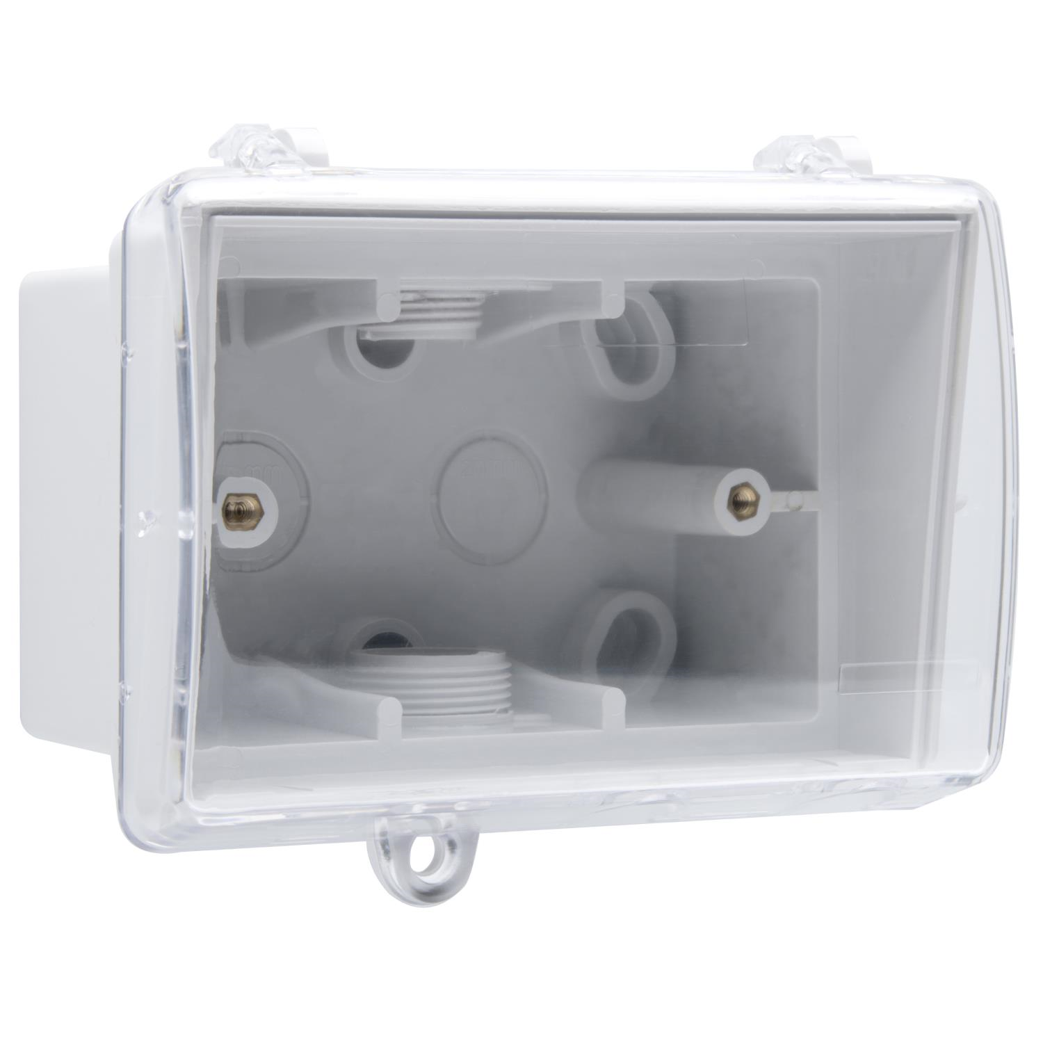 This Weatherproof Mounting Enclosure allows indoor switches to be mounted in the weather with a rating of IP53. It has a clear lid and is made from sturdy materials with a clear lid to allow visibility. This enclosure also includes a locking hole to allow security.
