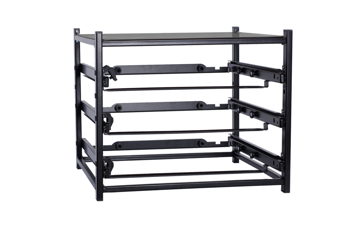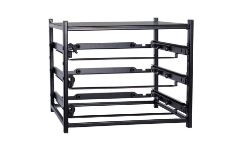 SFS3S StorageTek Single Frame comes completely assembled empty with provision for 3 small cases. Can be customized with StorageTek Blue, Grey, Black or Red coloured cases with a solid ABS Lid or a clear PC lid or other leading brands into our empty frame. No fiddly screws and time wasted to assemble the frames. These complete frames are suitable for Electricians, Plumbers, Data Cable installers, HVAC, TV Antenna Installers, Mechanics and many others in business, office, workshop or at home. All frames can be screwed onto a floor of a van or under a bench or onto a work bench.