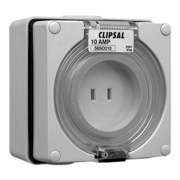 Clipsal - 56 Series, Socket Outlets, Surface Sockets - IP66, 110V 10A - 2 ParAllel Flat Pins***EMAIL/TEXT FOR PRICING***
