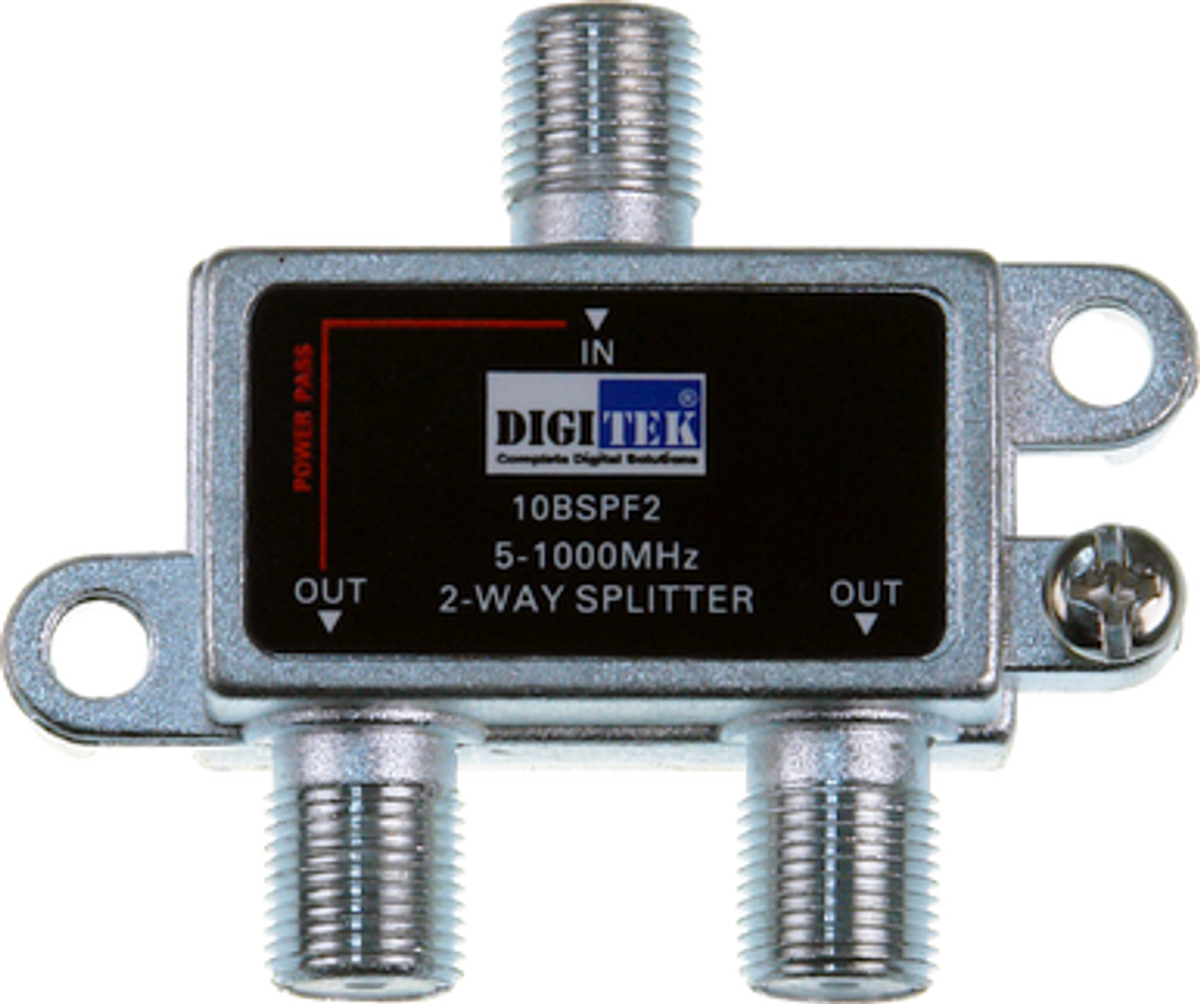 Digitek 2 Way 5-1000MHz F Type Splitter - 1 Leg Power Pass