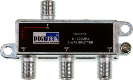 Digitek 3 Way 5-1000MHz F Type Splitter - 1 Leg Power Pass