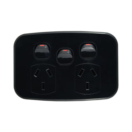 带额外开关的双电源插座 10A 250V AC BLACK LUNA 系列