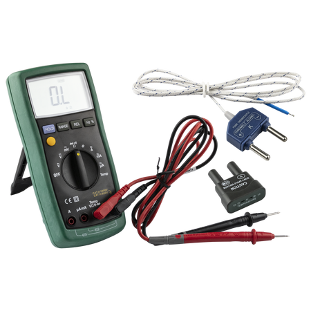 The GSM-900 Autoranging Digital Multimeter is a versatile and reliable tool for measuring DC/AC Voltage, Current, Resistance, Capacitance, Frequency, Duty Cycle, Relative Measurement, Temperature, Hold and Back Light. With a clear 4000 counts LCD display, auto-ranging capability, and safety features like overload protection, it's a compact and durable solution for professionals and enthusiasts alike.