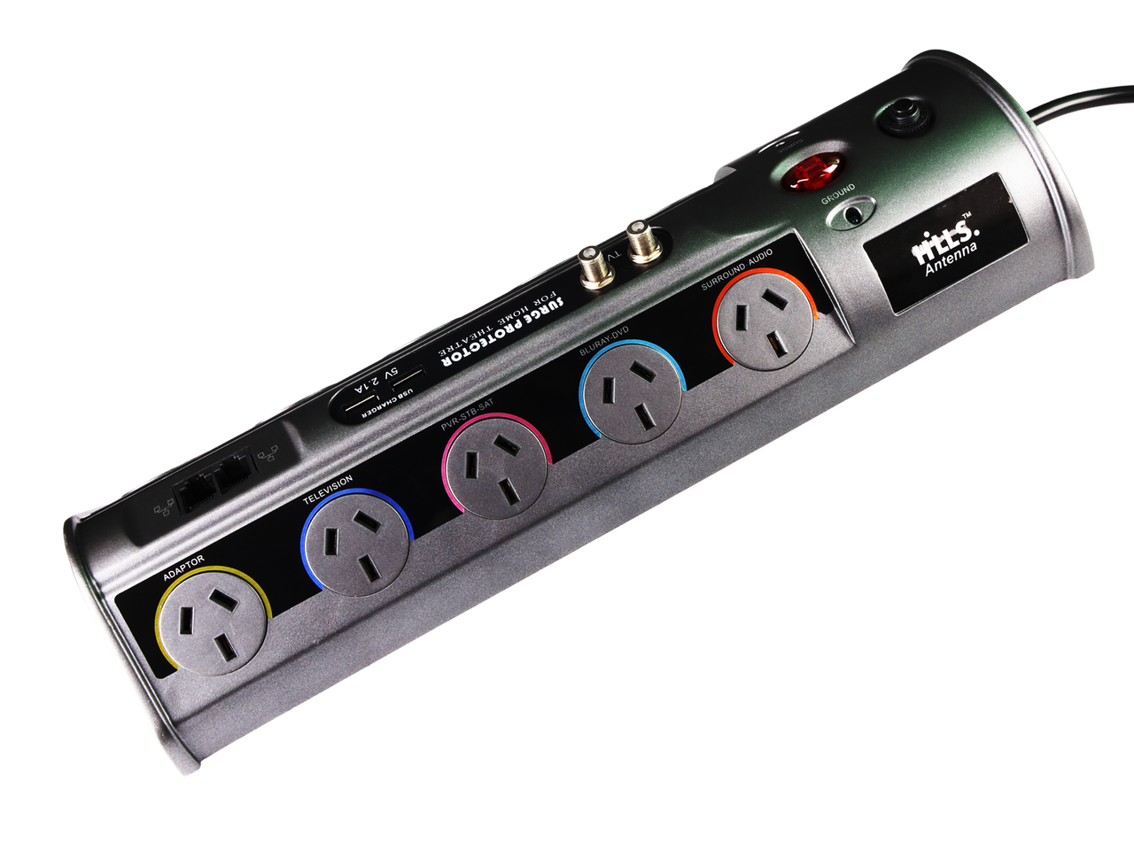 Suited to both Home Entertainment and Computer Systems. Featuring 10 surge protected outlets to power and help protect your valuable electronic equipment from damaging power spikes. Includes additional surge protection for your internet/telephone line as well as TV antenna/Pay TV set top boxes. The 5 spaced power outlets will provide additional space to accomodate bulky power packs and chargers. LED indicator lights will confirm the status of surge protection, earth/grounding and power availability through a large master switch. Also included are 2 x USB charging points.