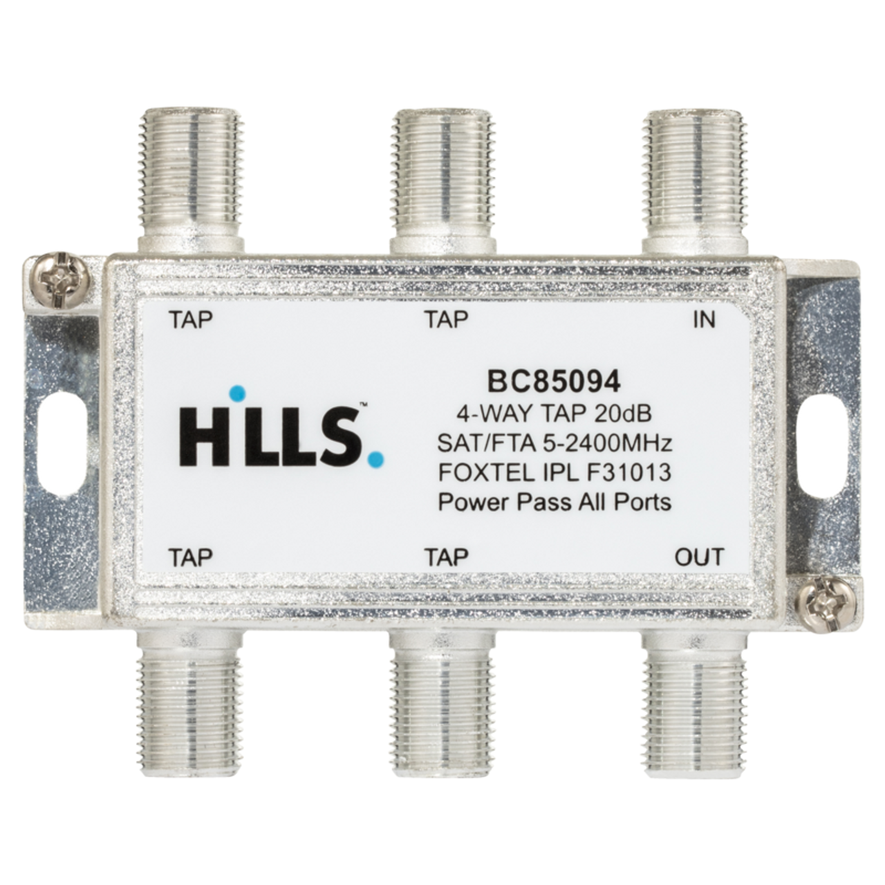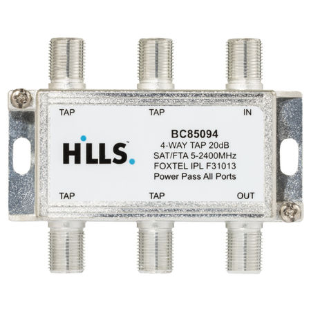 The Hills Antenna BC85094 is a 4-way 20dB Tap with 2.4GHz rated Foxtel Stacker Satellite Technology