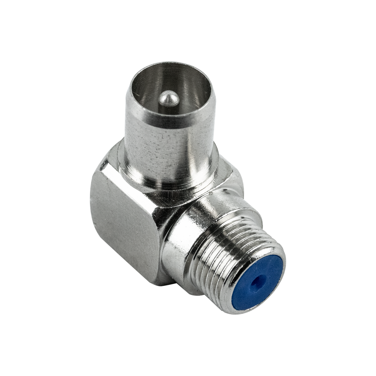 The Hills Antenna BC87045 F-Type female to PAL male 90 degree adaptor is suitable for all applications and is particularly useful for installations in tight spaces.