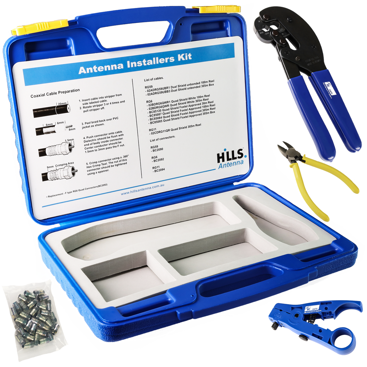 The Hills Antenna BC88181 is an Antenna Installers Hex Crimp Tool Kit.